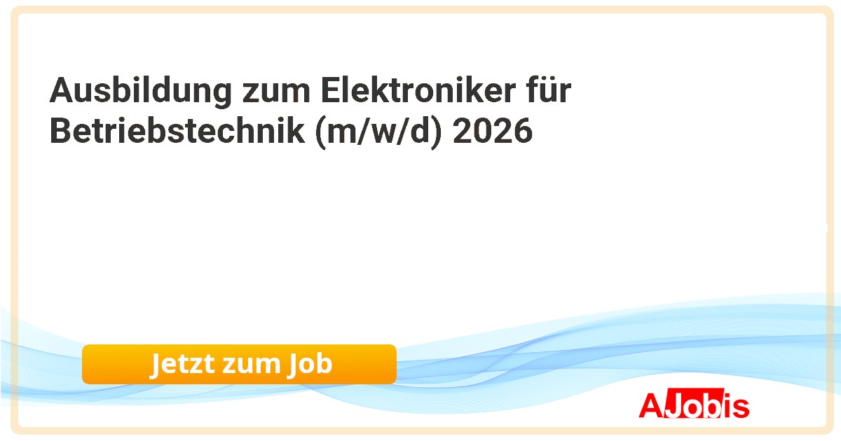 EEW Energy from Waste GmbH - Büddenstedt [02.11.2025] --Die EEW Energy from Waste Helmstedt GmbH sucht für den Standort Büddenstedt zum nächstmöglichen Zeitpunkt eine/n Auszubildenden (m/w/d) zum Elektroniker für Betriebstechnik 2026 Kurzbeschreibung Du interessierst dich für Technik, willst wissen, wie elektrische Anlagen... |