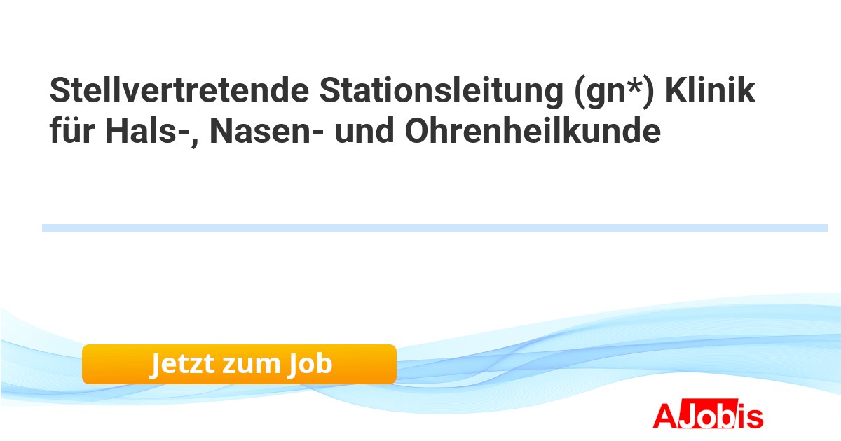 Universitätsklinikum Münster - Münster [12.11.2025] -- Stellvertretende Stationsleitung (gn*) Klinik für Hals-, Nasen- und Ohrenheilkunde Unbefristet | In Voll- oder Teilzeit | Vergütung nach TV-L | Stationen der Klinik für Hals-, Nasen- und Ohrenheilkunde | Kennziffer 11375 Wir sind das UKM. Wir haben einen klaren... |