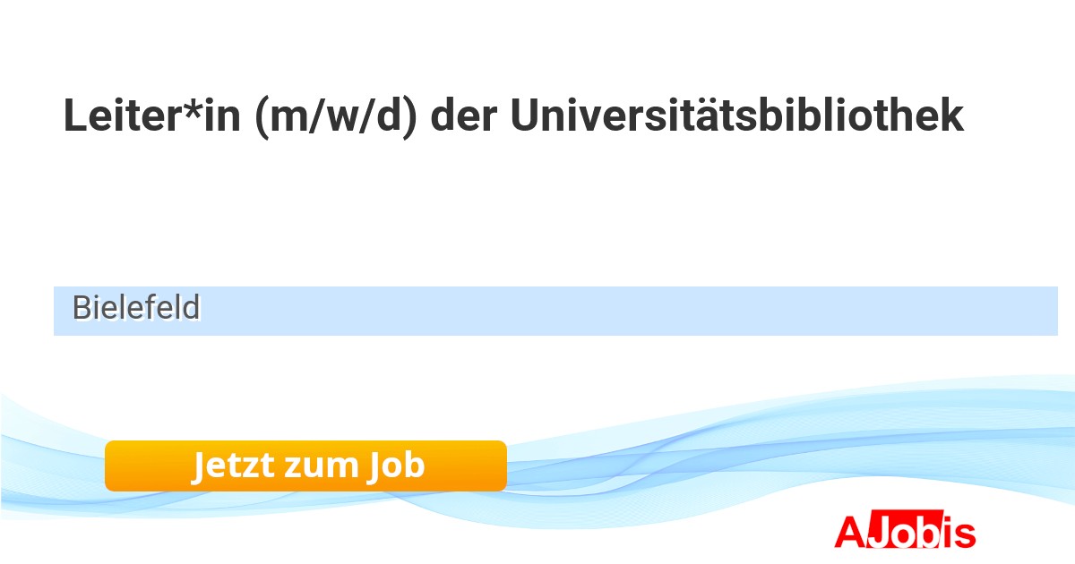 Universität Bielefeld - Bielefeld [06.11.2025] --An der Universität Bielefeld ist die folgende Position zu besetzen: Leiter*in (m/w/d) der Universitätsbibliothek Kennziffer: Tech25310 Start: 01.05.2026 Vollzeit attraktive Vergütung im Rahmen des TV-L bzw. bei Vorliegen der beamtenrechtlichen Voraus. Besoldung nach A16... |