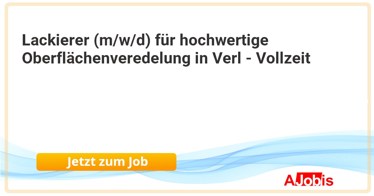 Fortkord Oberfläche Industrielackierungen GmbH - Verl [08.11.2025] -- Lackierer (m/w/d) für hochwertige Oberflächenveredelung in Verl – Vollzeit Fortkord Oberfläche Industrielackierungen GmbH ist ein mittelständisches Unternehmen mit Sitz in Verl, spezialisiert auf die hochwertige Lackierung von Kunststoff-, Metall- und Holzoberflächen.... |
