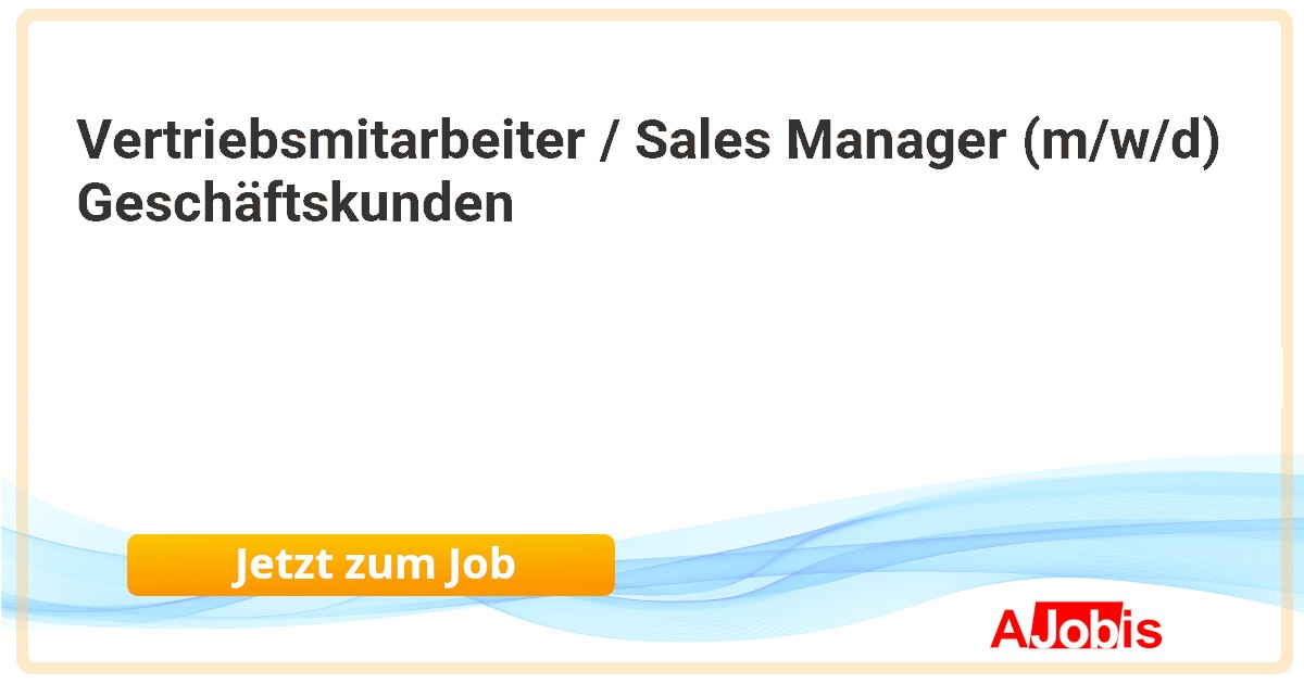 Vertriebsmitarbeiter / Sales Manager (m/w/d) Geschäftskunden*