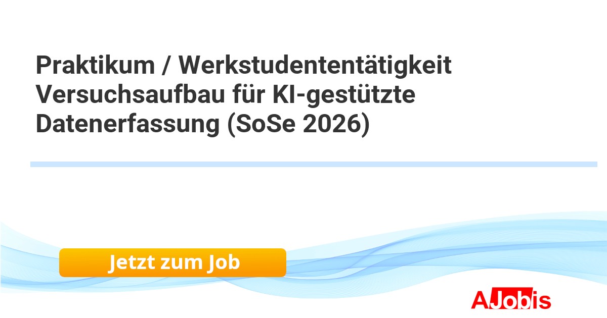 Leuze electronic GmbH + Co. KG - Owen bei Kirchheim / Teck [27.11.2025] --Praktikum / Werkstudententätigkeit Versuchsaufbau für KI-gestützte Datenerfassung (SoSe 2026) Thema: Aufbau eines Messaufbaus zur automatisierten Datenerfassung für eine Auswertung mittels KI Bereich: Research & Development Standort: Owen bei Kirchheim / Teck... |