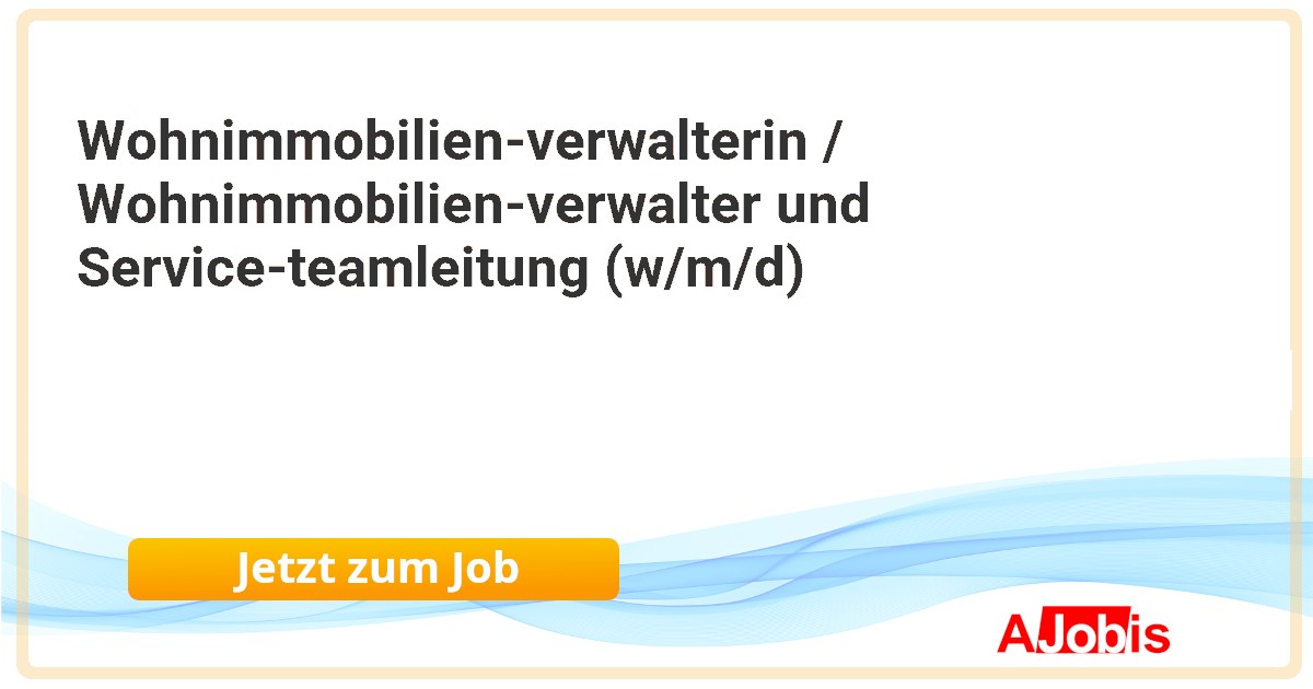 Bundesanstalt für Immobilienaufgaben - Potsdam [09.11.2025] --Unser Serviceteam am Arbeitsort Potsdam bewirtschaftet einen Bestand von rund 1.300 Wohneinheiten. Für die Leitung des Teams mit ca. 10 bis 12 Beschäftigten und die Übernahme wohnungswirtschaftlicher Aufgaben suchen wir zum nächstmöglichen Zeitpunkt zur unbefristeten... |