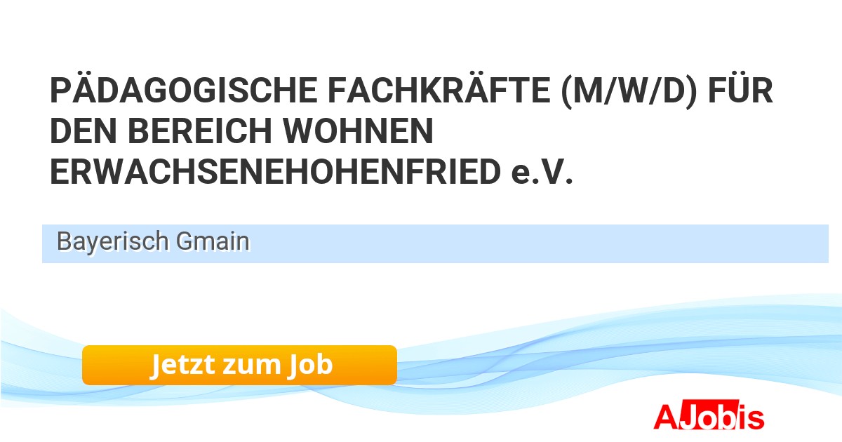 HOHENFRIED e.V. - Bayerisch Gmain [22.10.2025] --Betreuung lebenspraktischer Bereiche inkl. Freizeit und Gesundheitsfürsorge im Schichtdienst