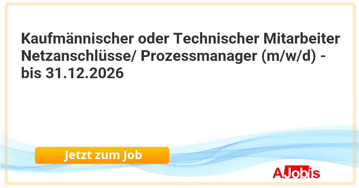 Kaufmännischer oder Technischer Mitarbeiter Netzanschlüsse/ Prozessmanager (m/w/d) - bis 31.12.2026* E.DIS Netz GmbH - Fürstenwalde/Spree[23.11.2025] --Als einer der größten regionalen Netzbetreiber in Deutschland gestalten wir bei E.DIS die Zukunft von Menschen, Regionen und der Energiewelt. Wir sorgen dafür, dass Millionen von Menschen in Brandenburg und Mecklenburg-Vorpommern rund um die Uhr zuverlässig mit Energie... |