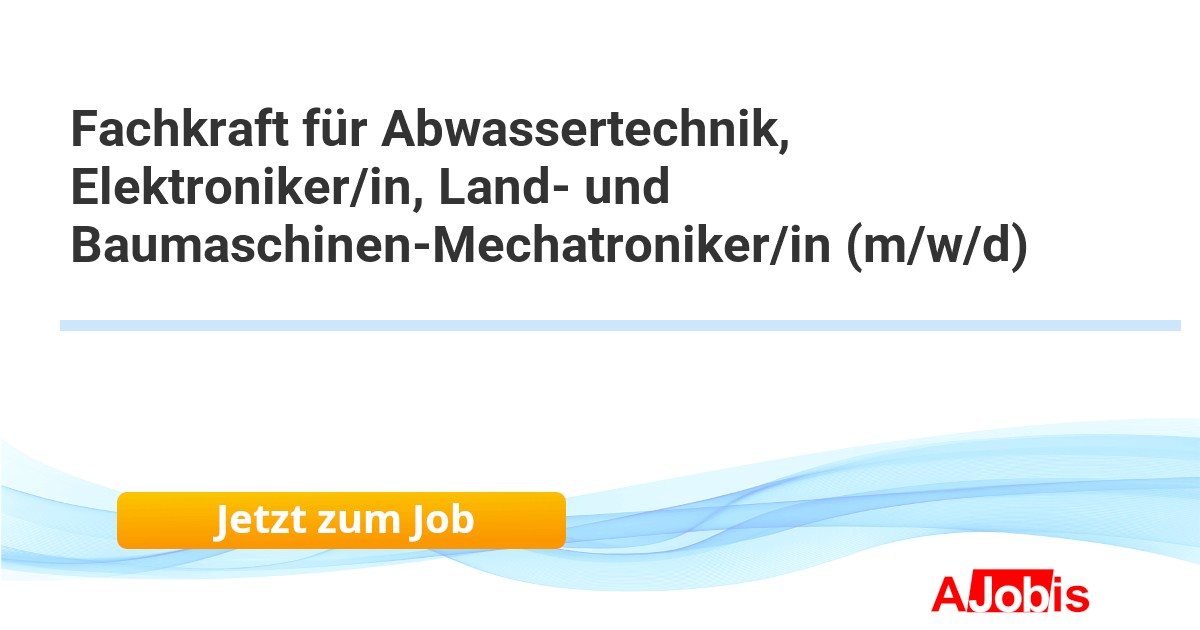 Stadt Warendorf - Warendorf [07.11.2025] --Die Stadt Warendorf sucht für den Abwasserbetrieb zum nächstmöglichen Zeitpunkt eine Fachkraft für Abwassertechnik, Elektroniker/in, Land- und Baumaschinen-Mechatroniker/in (m/w/d) Der Abwasserbetrieb der Stadt Warendorf betreibt u.a. zwei Abwasserreinigungsanlagen (80.000... |