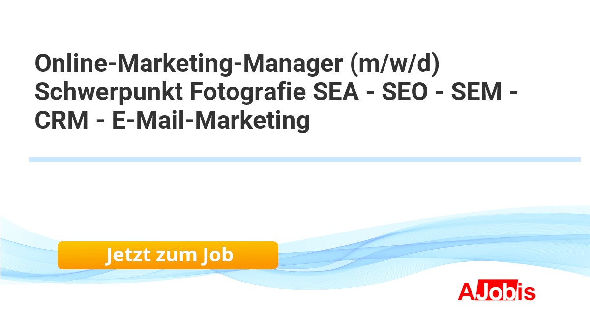 Dirk Kremer Consulting - Westerkappeln [26.11.2025] -- Online-Marketing-Manager (m/w/d) – Schwerpunkt Fotografie SEA – SEO – SEM – CRM – E-Mail-Marketing Dein potenzieller Arbeitgeber: Unser Mandant ist ein seit über 100 Jahren erfolgreiches mittelständisches Unternehmen und zählt mit seinem spezialisierten... |
