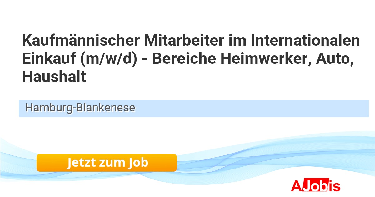 Kaufmännischer Mitarbeiter im Internationalen Einkauf (m/w/d) - Bereiche Heimwerker, Auto, Haushalt* Commerciamo GmbH - Hamburg-Blankenese[06.11.2025] --Die Commerciamo GmbH ist ein schnell wachsendes international tätiges E-Commerce Unternehmen mit Sitz in Hamburg. Wir vertreiben erfolgreiche Eigenmarken weltweit auf den relevanten Online-Marktplätzen und im eigenen Marken-Onlineshop (www.athlontools.com). Bei Commerciamo... |