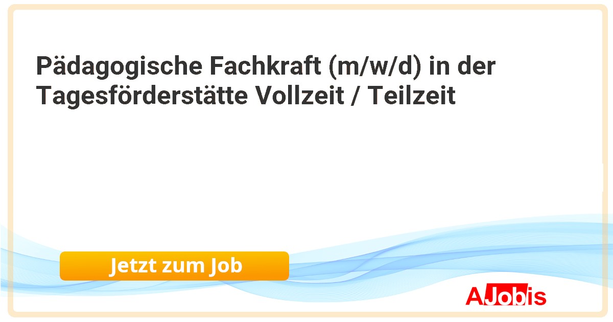 Lebenshilfe Neustadt/Wstr. e.V. - Neustadt an der Weinstraße [06.11.2025] -- In unserer Tagesförderstätte werden 18 Menschen mit körperlicher und geistiger Behinderung in drei arbeitsweltorientierten Gruppen betreut. Pädagogische Fachkraft (m/w/d) in der Tagesförderstättein Voll- oder Teilzeit (19,5 - 39 h/w) als Elternzeitvertretung... |